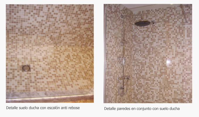 Adaptación de un baño para mejorar la accesibilidad, se sustituye la bañera, y en su lugar, se instala una ducha con suelo antideslizante.